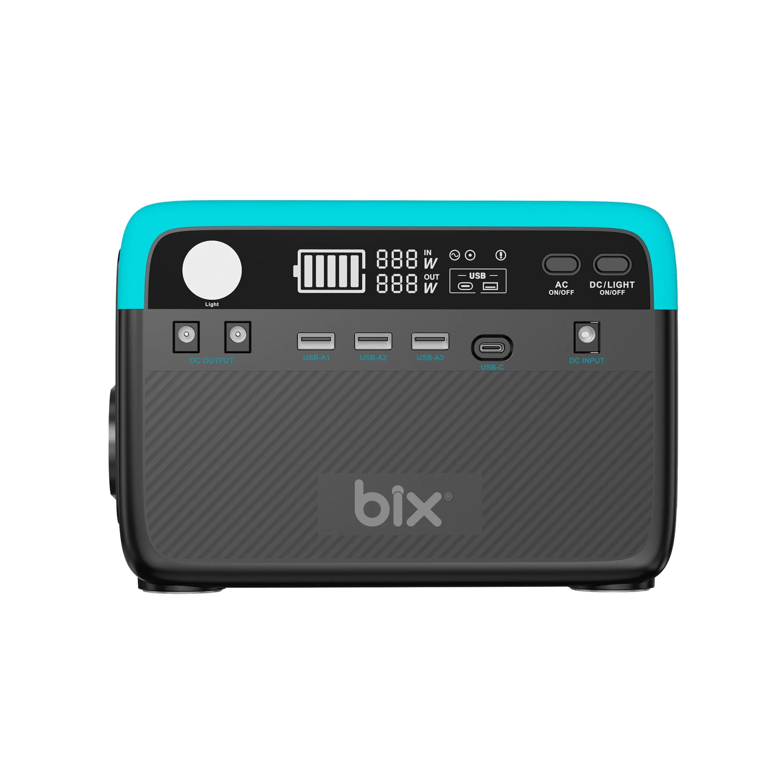 Bix PS60K üzerinde yer alan LED ekran, şarj durumu, çıkış gücü, kalan batarya yüzdesi ve aktif bağlantılar hakkında anlık bilgi verir. Pil seviyesi simgesi, giriş gücü, çıkış gücü, AC çıkış bildirimi, aşırı güç uyarı bildirimi ve DC çıkış bildirimleri bu ekranda görünür. Böylece güç istasyonunun performansını ve kalan çalışma süresini rahatlıkla takip edebilirsiniz. Kullanıcı dostu bu ekran sayesinde enerji tüketiminizi kolayca kontrol altında tutabilirsiniz.