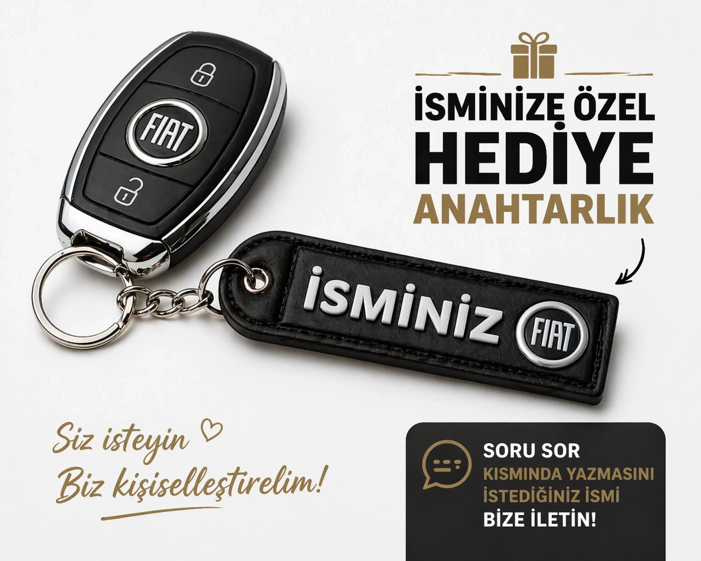 İsimli Fiat Anahtarlık , Kişiye Özel - Hediyelik İsimli Araç Logolu Anahtarlık - İsimli Fiat Araba Anahtarlığı