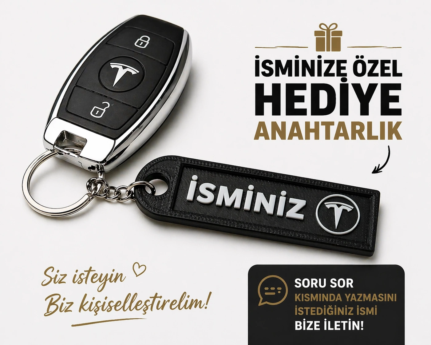 İsimli Tesla Anahtarlık , Kişiye Özel - Hediyelik İsimli Araç Logolu Anahtarlık - İsimli Tesla Araba Anahtarlığı