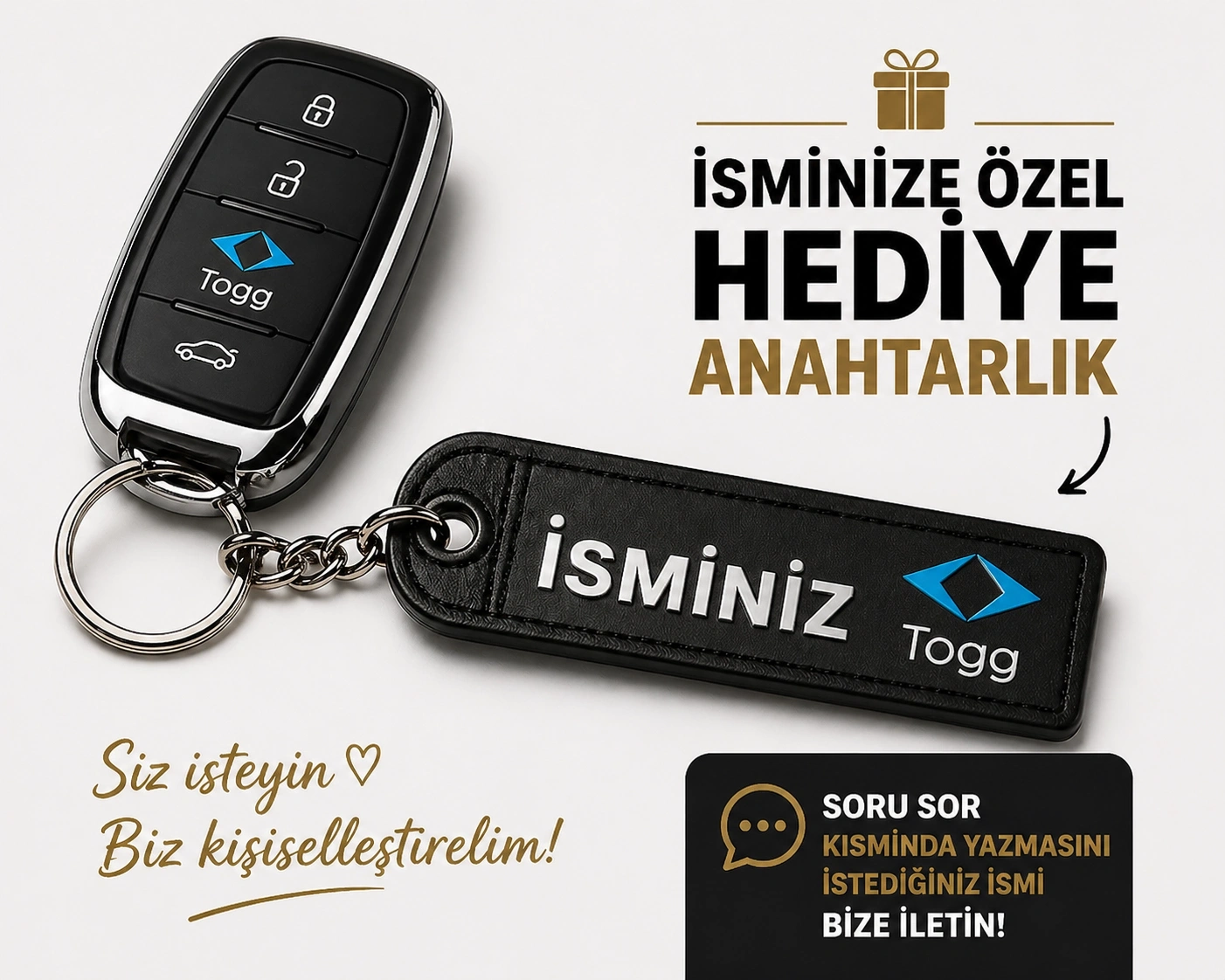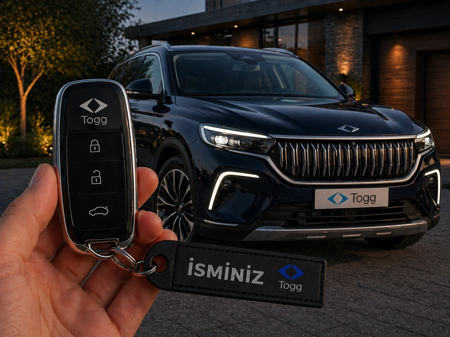İsimli TOGG Anahtarlık , Kişiye Özel - Hediyelik İsimli Togg Araç Logolu Anahtarlık - İsimli Araba Anahtarlığı